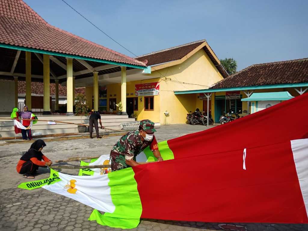 Madiun - Untuk memeriahkan HUT Kemerdekaan RI Ke-77, Babinsa Koramil 05/Wungu Kodim 0803/Madiun Pelda Bambang Sukendro bersama Perangkat Desa Mojopurno dan warga masyarakat memasang bendera merah putih dan umbul-umbul di setiap Gapura dan sepanjang jalan perkampungan di Desa Mojopurno, Kec. Wungu, Kab. Madiun, Kamis (4/8/2025).